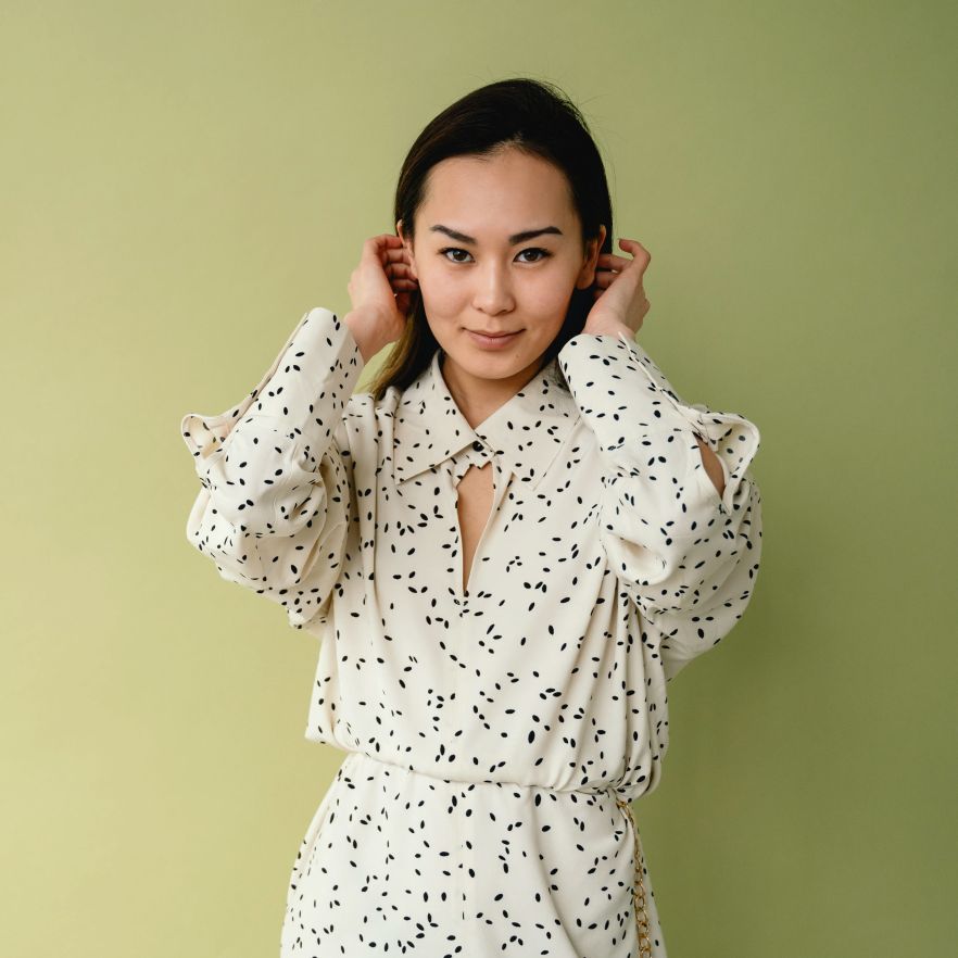 Dotted Long-Sleeve Blouse
