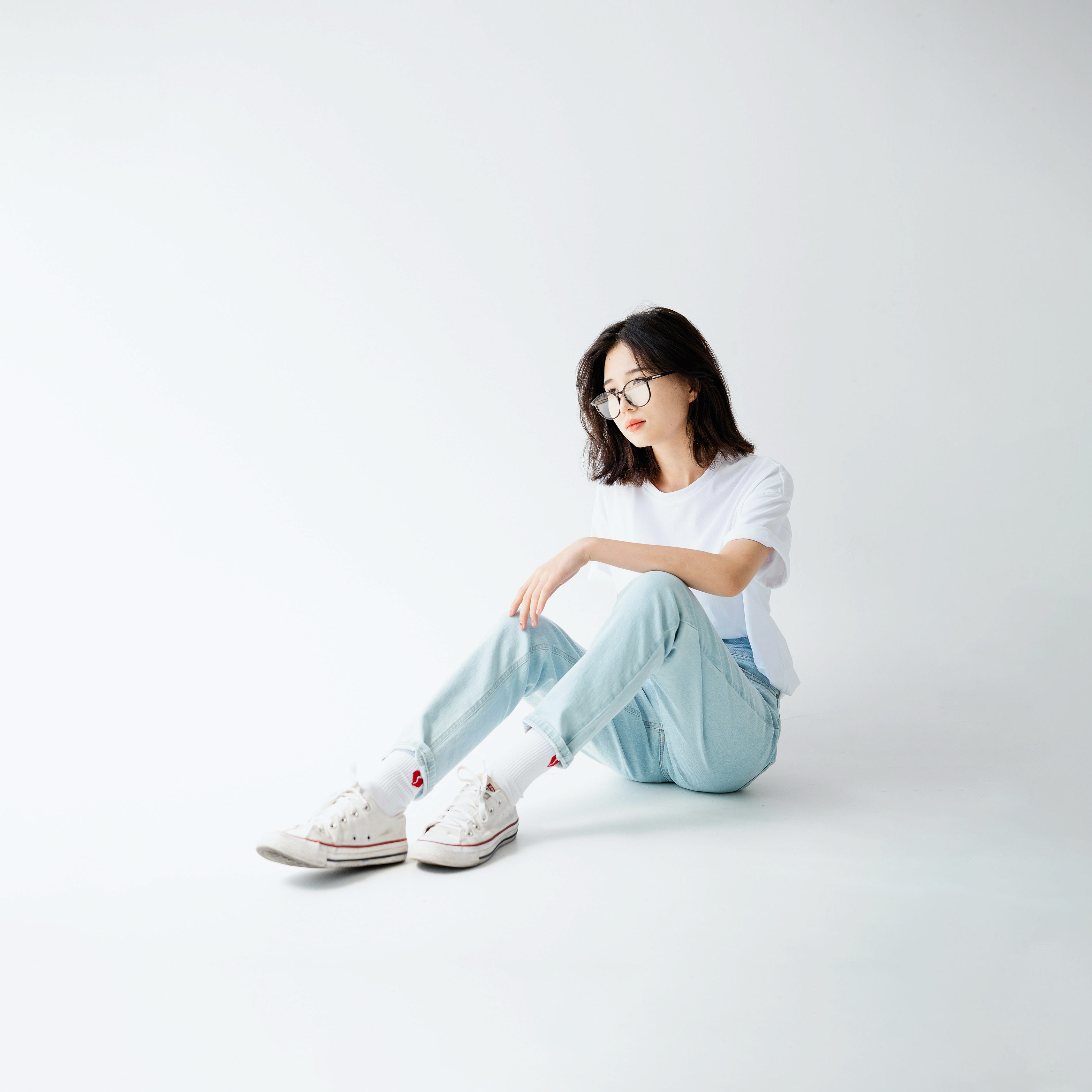 Mid-Waist White Jeans
