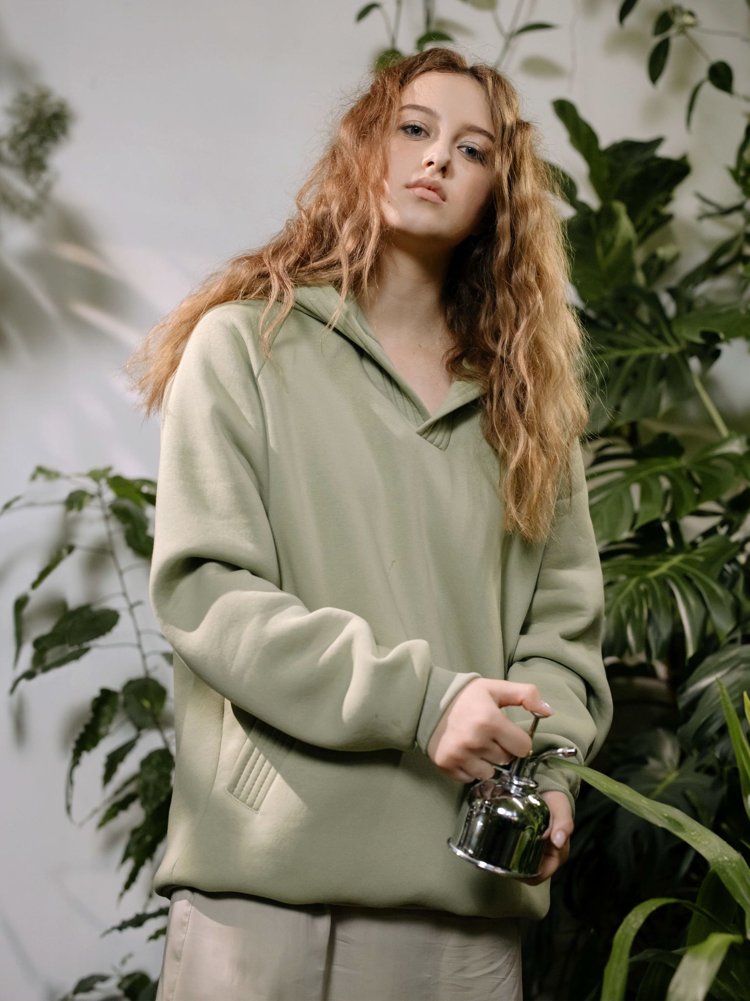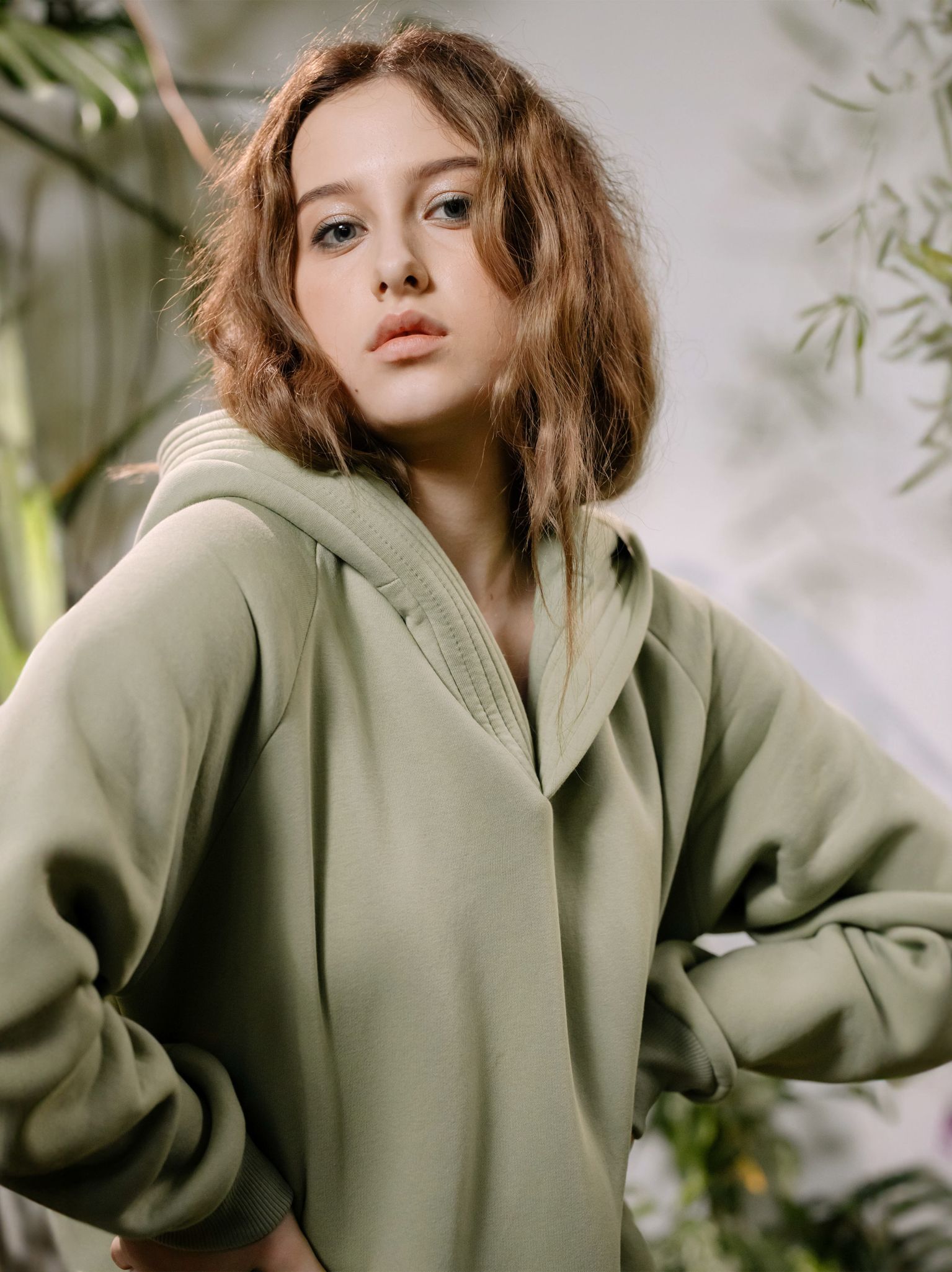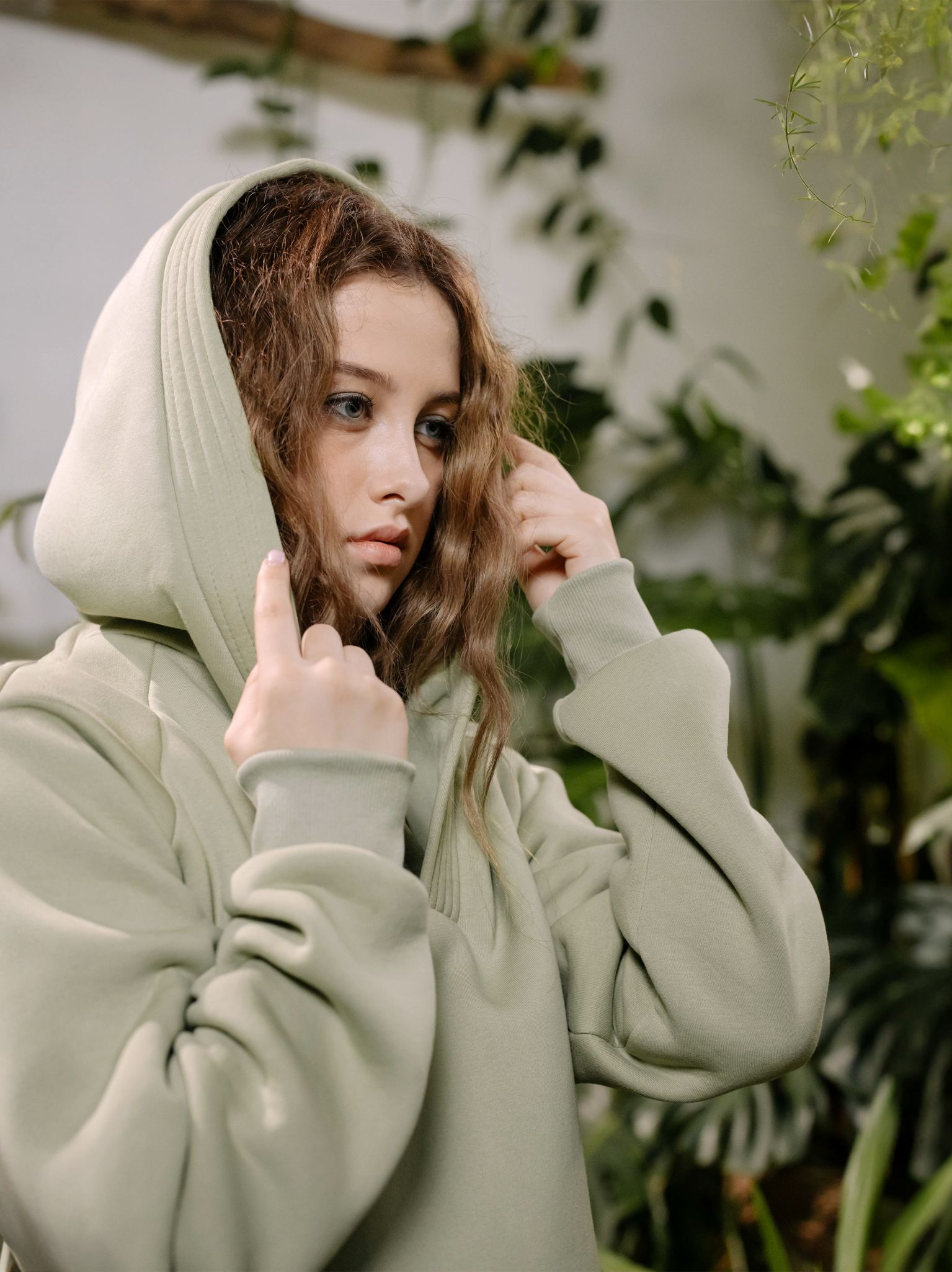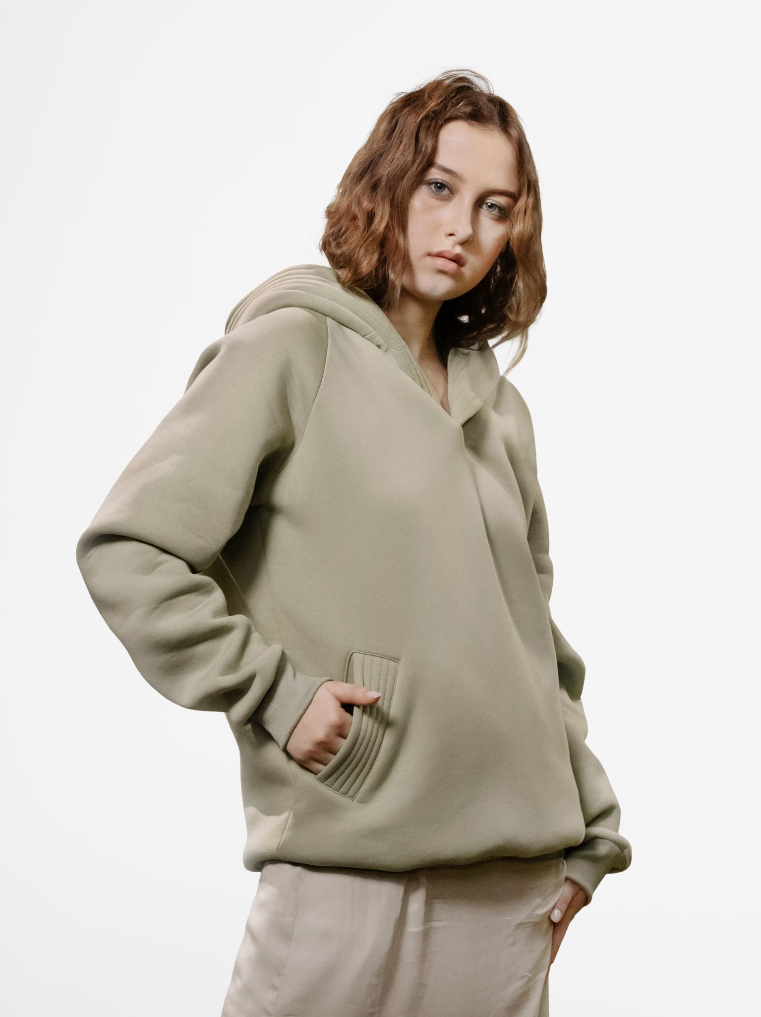 - Oversized, relaxed fit with hood and long sleeves