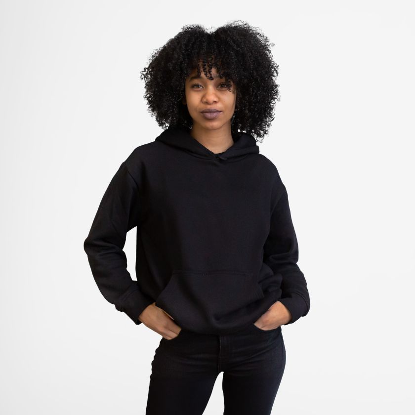 - Oversized, relaxed fit with hood and long sleeves